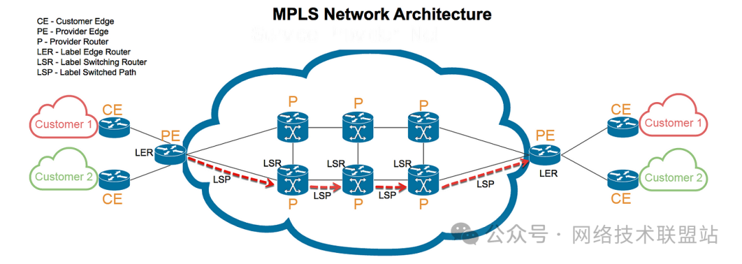 MPLS(Multiprotocol Label Switching)通过运营商提供的专用线路,为企业打造高质量的私有网络。它就像网络中的“高铁”,速度快、延迟低。