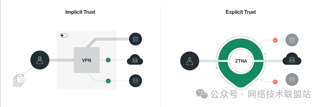 ZTNA(Zero Trust Network Access)基于“从不信任,始终验证”的原则。无论是谁、用什么设备,想访问资源都得先证明身份,而不是简单依赖网络边界。