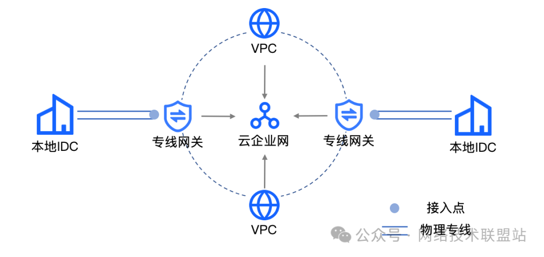 AWS、Azure、阿里云等巨头提供的虚拟私有网络(VPC),让企业能在云端构建专属网络,再通过VPN或专线连接到本地。