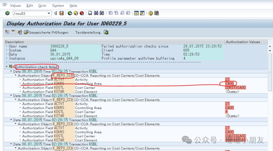 权限概念 不管是SAP系统,还是其他信息系统、操作软件或APP,都有一定的权限设置。在SAP系统中,用户拥有什么权限,是根据所分配的角色(Role)控制;SAP 权限系统结构复杂,包含大量单个权限场景及对应描述。中小型的企业对权限概念往往没有过多限制,大型公司则要求更加周密的方案。 权限概念通常应该根据特定公司的规模以及需求来进行定义。SAP 权限开发方案的大部分工作是由用户部门和项目小组成员执行的。必须在用户部门要求和基础安全战略的基础之上,将所有活动的单个事务分配给后续角色。 权限分配的目标是在确保安全的前提下,允许用户访问他们需要执行工作所必需的系统资源。它需要遵循最小权限原则,即用户仅获得其角色所必需的权限,避免赋予过多的权限造成安全风险。此外,权限分配还应保持灵活性,以适应组织结构和业务流程的变化。 经常能听到来自不同客户的询问,如何给某一个特定的事务代码设定权限呢。以下咱们就以一个简单的例子来说明。 问题描述 如何给事务代码KSBL设定管理会计控制范围(Controlling area 字段名: KOKRS)的特定权限,比如说,只能查看Controlling area 0001里面的数据呢,今天就来探讨一下这问题。 分析过程 第一、使用事务代码SU24,查看一下所有能够被KSBL使用到的权限对象: 第二、在查询出来的权限对象列表中,挨个查看"field values",你就会发现,对于K_REPO_CCA这个权限对象,会对KOKRS,也就是控制范围做检查。 第三、到上一步为止,其实你已经找到了问题的答案,在这一步中,我们一起来验证一下,这个答案是否有效可用。 我们在Role(事务代码 PFCG)里面,维护一下K_REPO_CCA这个权限对象如下: 第四、在上一步的设定中,针对K_REPO_CCA这个权限对象,我们只分配了“BOWN”这个管理会计控制范围的权限,也就是说,针对其他的控制范围,都是没有权限的。这一步中,运行事务代码KSBL来验证一下,这个设定是否有效。 首先,我们使用“BOWN”这个管理会计控制范围: 可以运行出结果,我们看到是没有任何问题的。 然后,我们使用另外一个管理会计控制范围,举例说明,如“CAOO”: 在这一步中,根据我们的设定,和预想的一样,不能得到结果。 第五、为了进一步验证,可以使用事务代码SU53,查看一下刚才权限的问题出现在什么地方: 从上图中,可以看到,因为使用了管理会计控制范围CAOO,权限读取失败。 总结 任何多用户的系统不可避免的涉及到权限问题,系统的使用者越多、使用者本身的社会属性或分工越复杂,权限问题也就越复杂,SAP系统就是典型的一个多用户、多任务的系统。SAP作为一款企业管理软件,在企业管理领域取得了巨大的成功,这主要是因为SAP把先进的管理思想融入到软件产品内,以及软件本身具有的先进的设计架构,可以配置的业务模式,几乎无所不在的管理内容等,当然同它完善的权限管理功能也是分不开的。 SAP权限的重要性是毋庸置疑的,但是在项目实施过程中,项目经理往往都不太重视权限,主要的原因是在上线期间以及上线后的短期内负面效果往往体现不出来,突发的权限问题也可以立即处理掉。这样做的后果也是很严重的,可能在一段时间之后SAP系统的权限管理者会忽然发现在不知不觉中权限管理已经变成了无序的状态,各种流程也变成了一种形式。 这是一个逐步完善的过程,可以随着企业业务的不断规范而不断完善,每个企业可以拥有自己独有的一致性检查规则。 阅读原文:原文链接 点晴模切ERP更多信息:http://moqie.clicksun.cn,联系电话:4001861886 该文章在 2025/4/24 10:03:32 编辑过 |