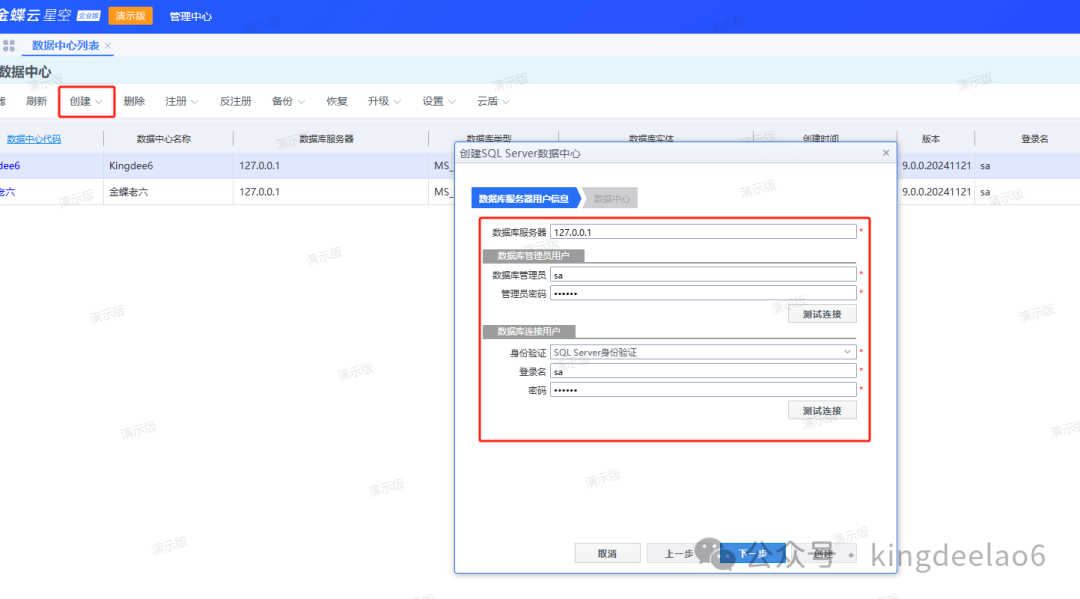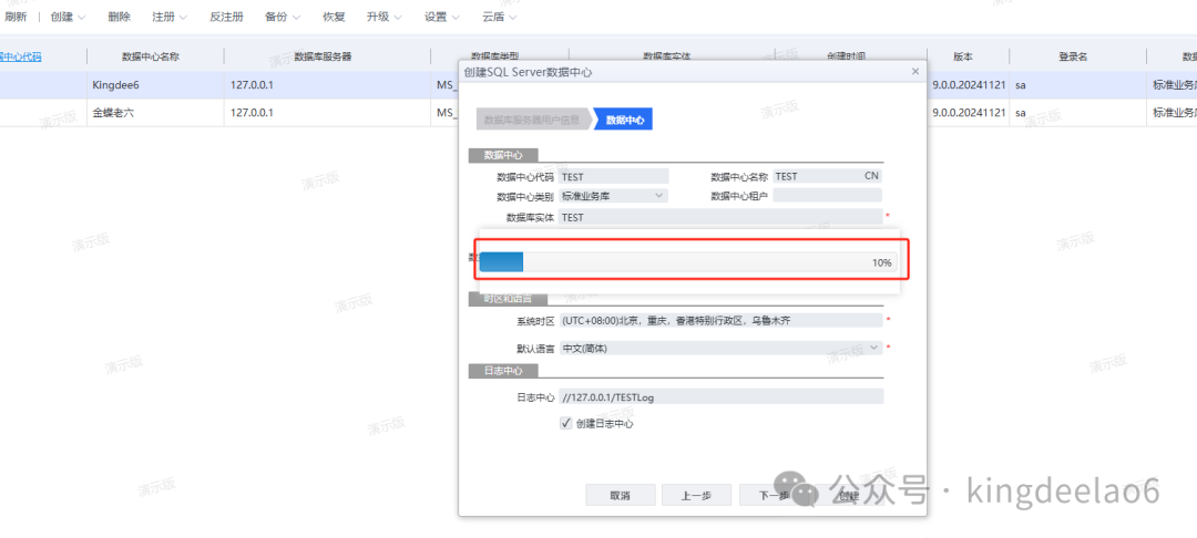金蝶云星空账套是企业财务与业务数据的独立管理单元,支持多组织架构和不同会计准则,实现数据隔离与协同。每个账套对应独立数据库,可灵活配置科目体系、业务流程及权限,整合供应链、生产、财务等模块数据,为企业提供统一核算平台,满足集团化管理和多元化经营需求,助力高效决策与合规运营。现在开始进入新建账套的主题,之前的文章我们讲过金蝶云星空的环境部署,不清楚的同学可以翻看我之前的文章。一、进入管理中心,输入管理中心管理员账号Administrator和密码登录,然后进入【数据中心列表】界面,如下图。二、如下图所示,点击【创建】,在弹窗的【创建SQL Server数据中心】界面中,输入数据库服务器IP,和SA的账号和密码,127.0.0.1是因为数据库和应用服务器都部署在本机,点击【下一步】。四、如下图所示,在弹窗的窗口,输入数据中心代码,数据中心名称,数据库实体,选择数据库文件路径,点击【创建】,在弹窗中点击【是】。五、如下图所示,会弹出创建数据中心(也称之为账套)的进度条,进度条跑满后,则新的账套创建成功,一般建库初始化的时间会比较久,耐心等待即可。六、账套创建成功后,后面接下来该怎么做呢?就可以用管理员登录账套创建用户进行登录使用了,前提是得配置好基础数据,维护好一些基础参数才行。