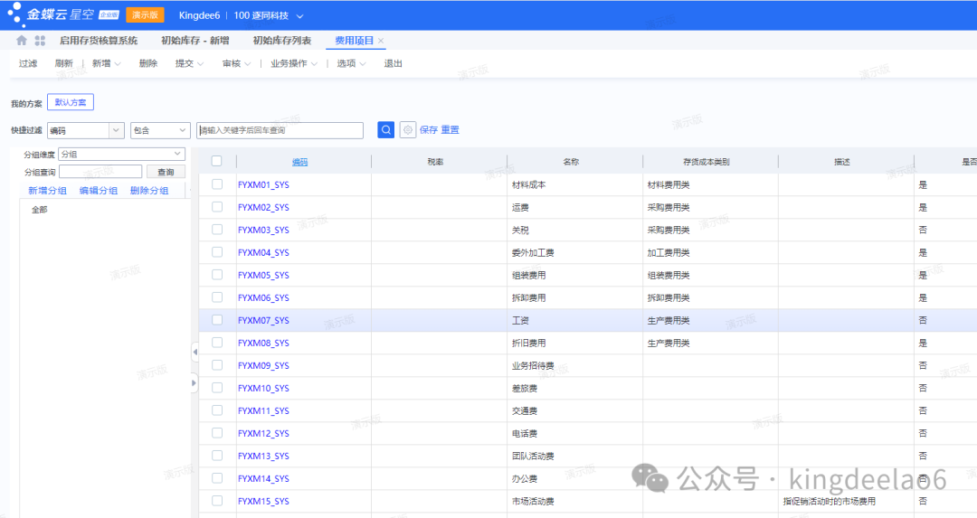 - 费用项目:通过费用项目去区别不同的成本核算维度,单独使用存货核算的企业一般是贸易型企业,一般都是进销存为主。