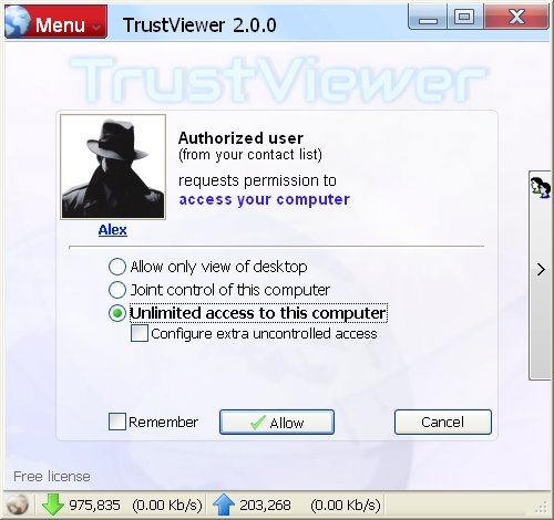 TrustViewer是一款由俄罗斯人开发的免费远程控制工具,以其小巧实用而闻名。无需繁琐的安装和注册流程,它提供了极为便利的远程协助功能。该软件强调隐私安全,严格保护用户信息,服务器不会存储任何用户数据。同时,它支持专用代理服务器模式,能够穿透防火墙和NAT代理,有效控制代理网络的上传和下载流量。TrustViewer功能丰富,包括桌面演示、录制会话、音视频通话、共享文件、同步剪切板以及自定义服务器等远程控制功能。其官网为http://trustviewer.com,提供软件下载及更多详细信息。