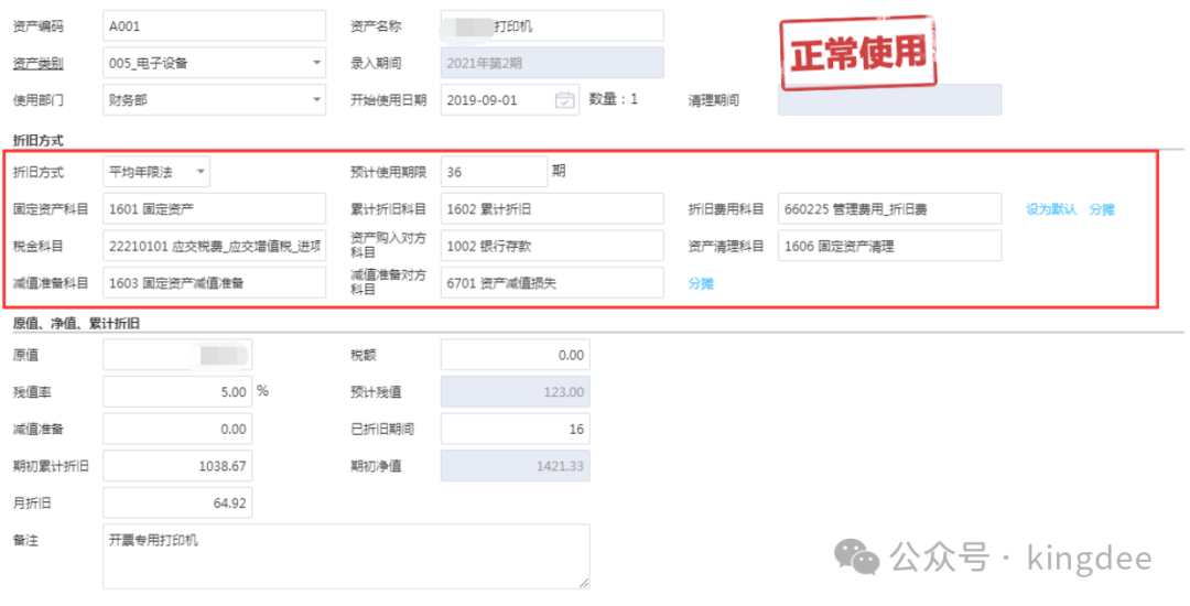 折旧方式: [折旧方式]、 [预计使用期限] 、[固定资产科目]、[累计折旧科目]、[税金科目]、[资产购入对方科目] 、[资产清理科目]、[减值准备科目]、[减值准备对方科目]、[原值]、 [税额]、[残值率]、[预计残值]、 [减值准备]、[已折旧期间]、[期初累计折旧]、[期初净值]、[月折旧] 原值、净值、累计折旧: [原值]:即购入资产的总值。 [税额]:即购入资产的含税部分金额。 [残值率]:根据不同的资产类别,残值率不同,可自行修改。 [预计残值]:不可填,等于原值*残值率。 [减值准备]:输入固定资产的减值准备金额。 [已折旧期间]:若开始使用日期早于录入期间,会有已折旧期间值,请填写。 [期初累计折旧]:若开始使用日期早于录入期间,且已计提了累计折旧,请填写。 [期初净值]:不可填,等于原值-期初累计折旧。 [月折旧]:系统会根据以上信息,自动计算出一个数值,计算公式为:(期初净值-预计残值)/(预计使用期限-已折旧期间),也可自行修改。 [备注]:填写备注。 如果卡片较多,还可以通过导入的方式,更加便捷。 点击导入按钮,下载导入模板: 卡片信息,保存后根据提示选择填写好的模板即可导入 2、固定资产生成凭证 新增卡片时,设置好卡片界面的固定资产、累计折旧、折旧费用、税金、资产购入、资产清理科目,保存卡片后,在卡片列表界面勾选相应卡片即可生成资产购入凭证或清理凭证。(开始使用日期早于录入期间的卡片不再生成资产购入凭证) 填写了减值准备数值的卡片,点击“生成凭证”会自动生成减值准备凭证。 卡片信息维护好,并且当期需要计提折旧,在【结账】页面会出现【计提折旧】,在结账时可一键生成凭证。 3、查看报表 报表自动生成,无需额外操作。 怎么样?是不是很简单? 阅读原文:原文链接 点晴模切ERP更多信息:http://moqie.clicksun.cn,联系电话:4001861886 该文章在 2025/5/6 12:13:34 编辑过 |