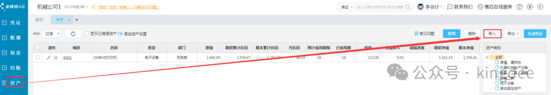 [点晴模切ERP]金蝶精斗云—教你如何使用固定资产模块新增卡片,查询报表?