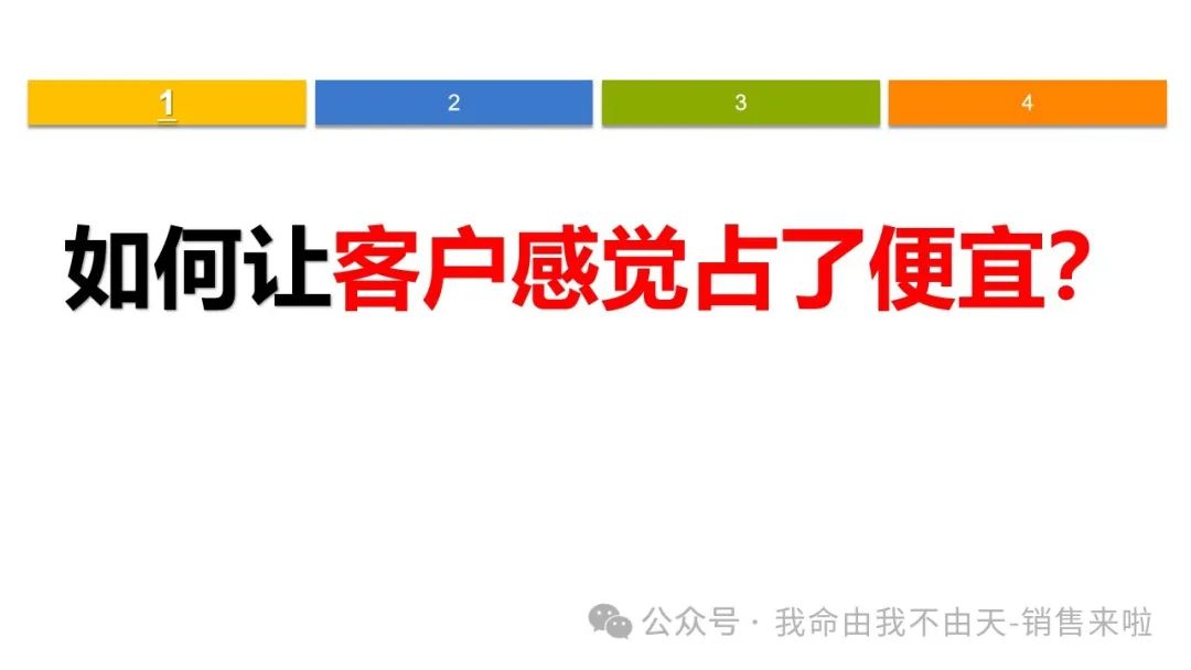 今天我们来跟大家聊一聊一个话题。那就是如何让客户感觉占了便宜。这个话如果我们把它分成三种意思。第一种:如何让,客户感觉占了便宜。第二种:如何让客户感觉,占了便宜。第三种:如何让客户感觉占了,便宜。文字表达没有朗读那么清晰,不知道我表达的还清楚。大家看我的码字,不要纠结这些,也不要纠结标点符号,手机上码字,多多包容,出发点就是大家每天见面聊聊叨叨。