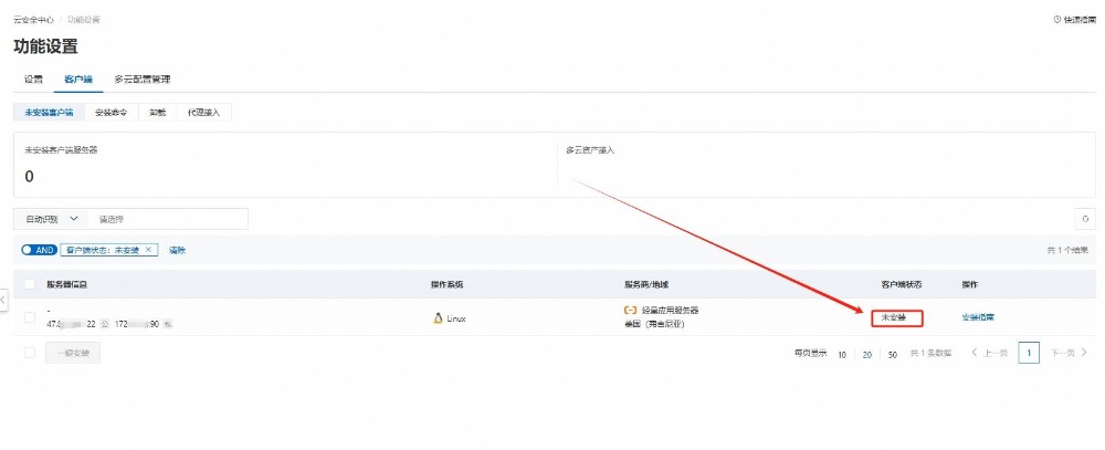 卸载第二步:登录云安全中心控制台。在客户端页签的卸载子页签下的服务器列表中,单击要卸载客户端的服务器操作列的卸载。