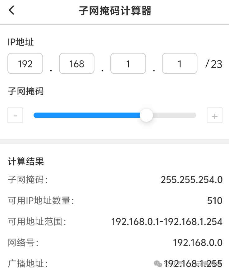 • 而192.168.1.255/23就是广播地址——不能用