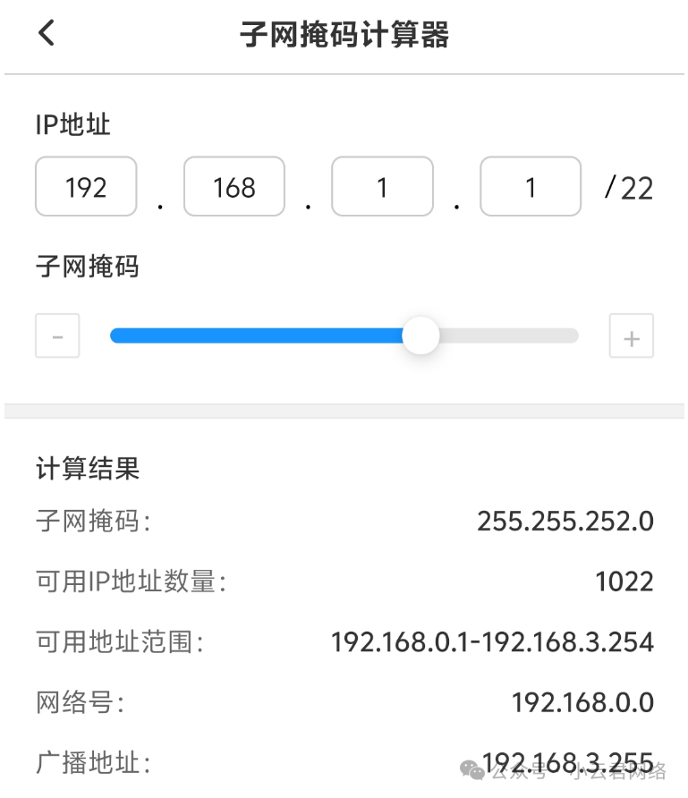 • 192.168.1.255/22是主机号地址——能用