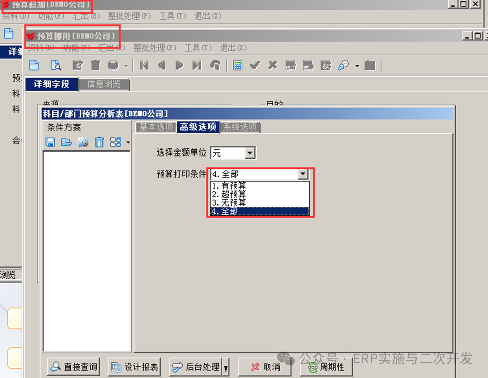 费用预算——易飞支持费用预算控制,可做预算追加、预算挪用,出部门或科目预算分析表