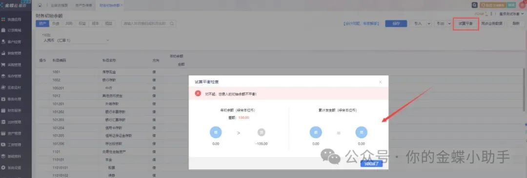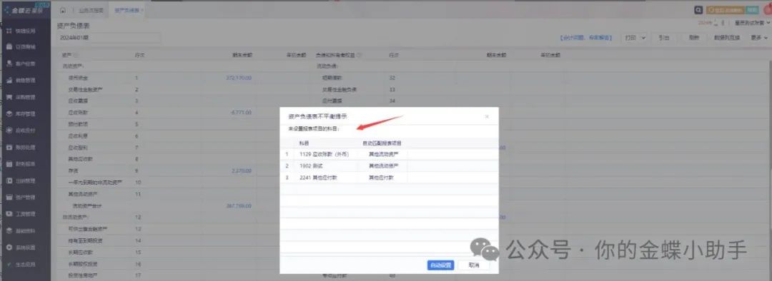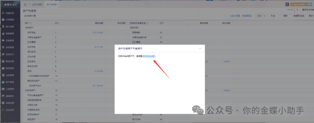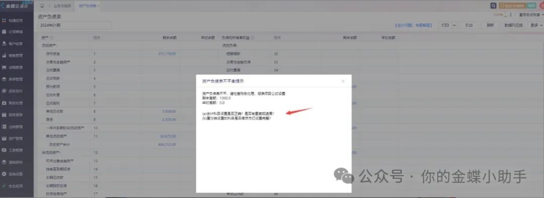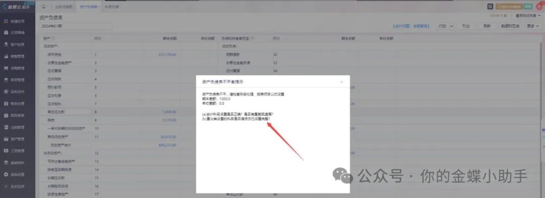 [点晴模切ERP]金蝶云星辰财务系统打开资产负债表,提示不平衡的常见情况