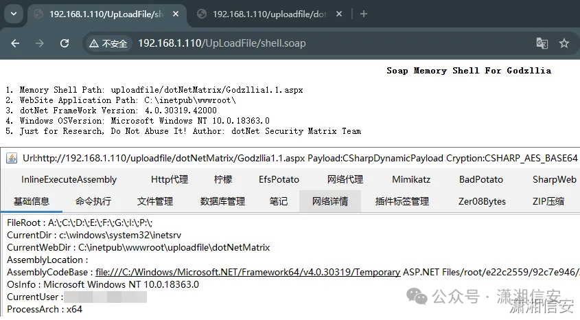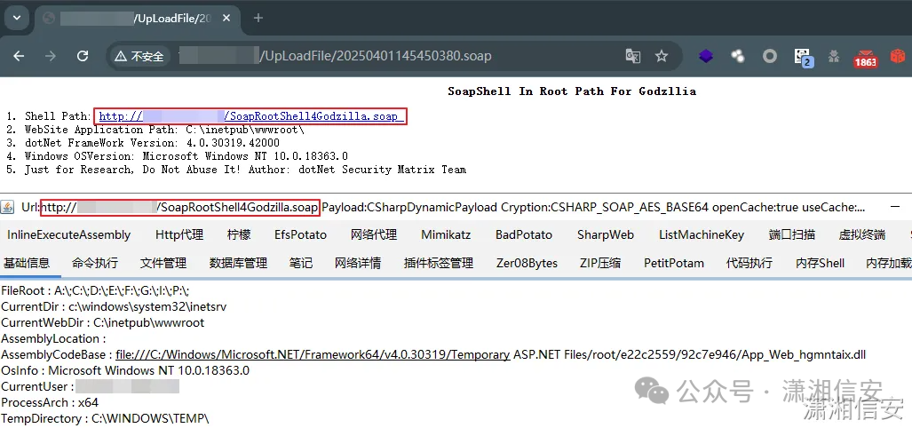 最后他也是通过上传一个能正常解析的Sharp4SoapGodzlliav1.1.soap
