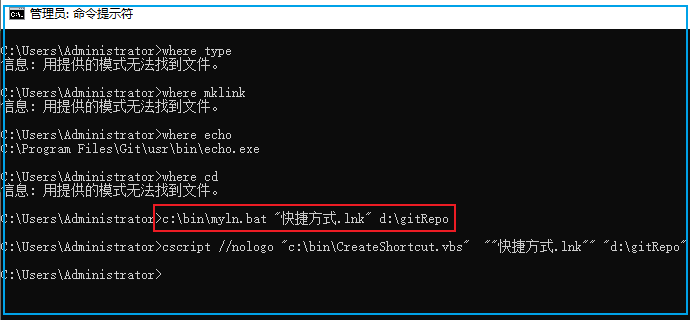 c:\bin\myln.bat "快捷方式.lnk" d:\gitRepo