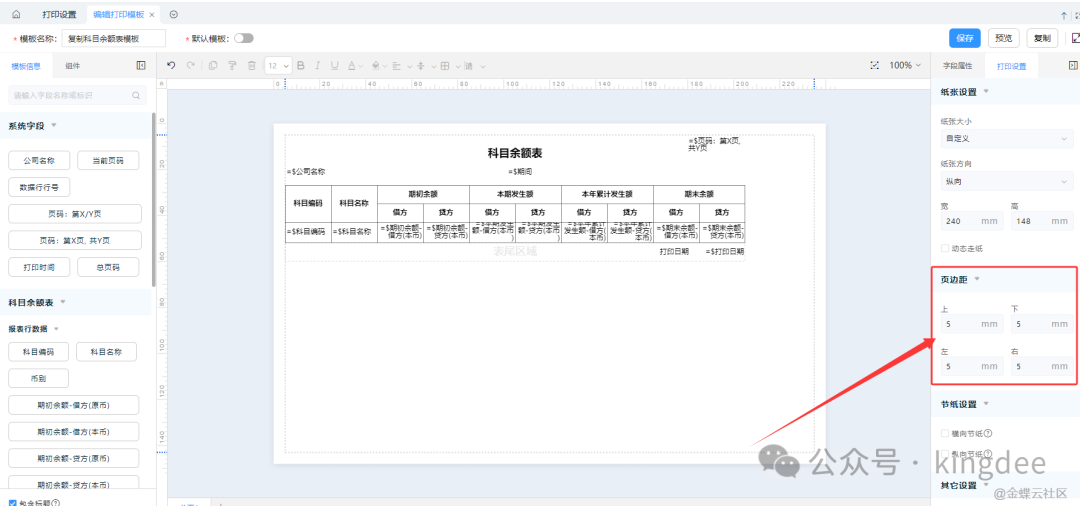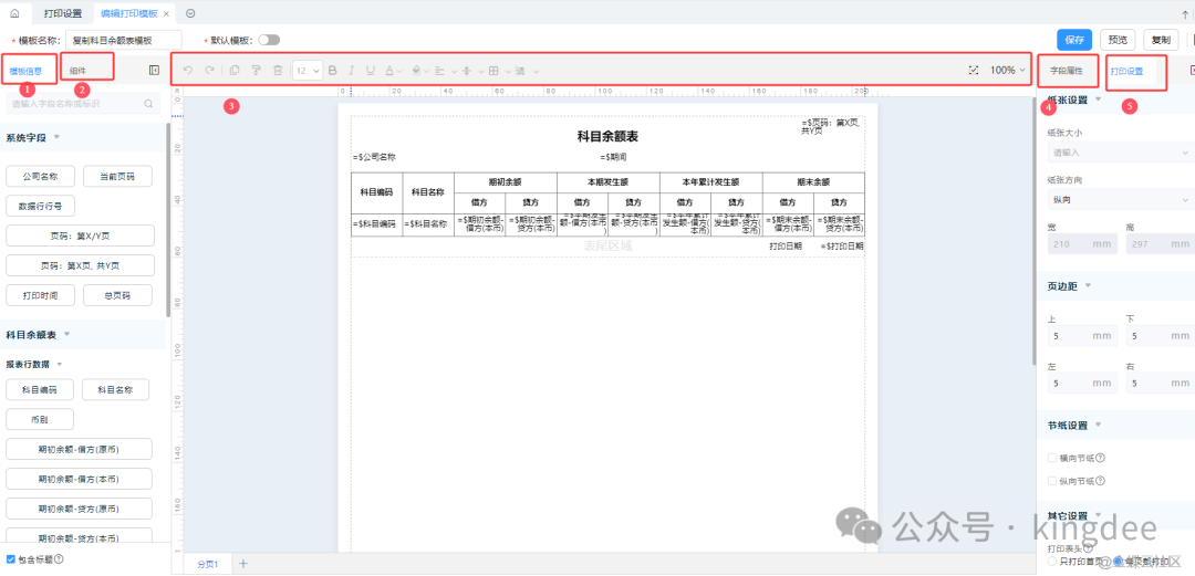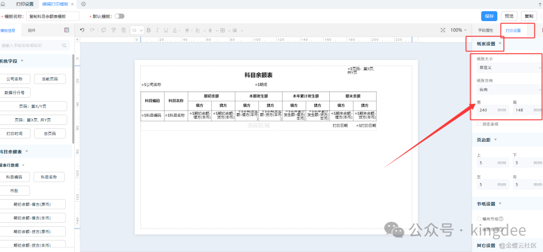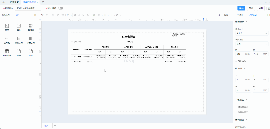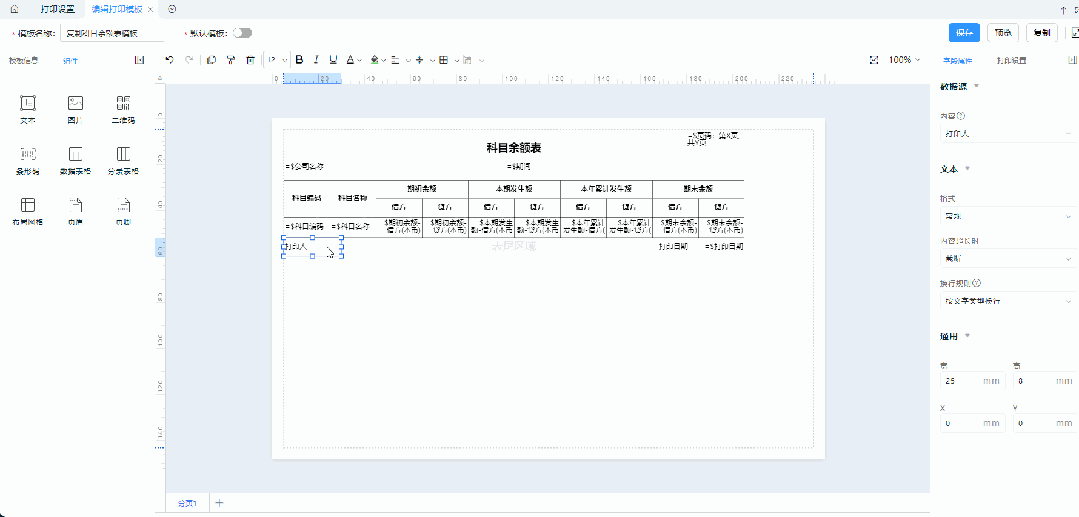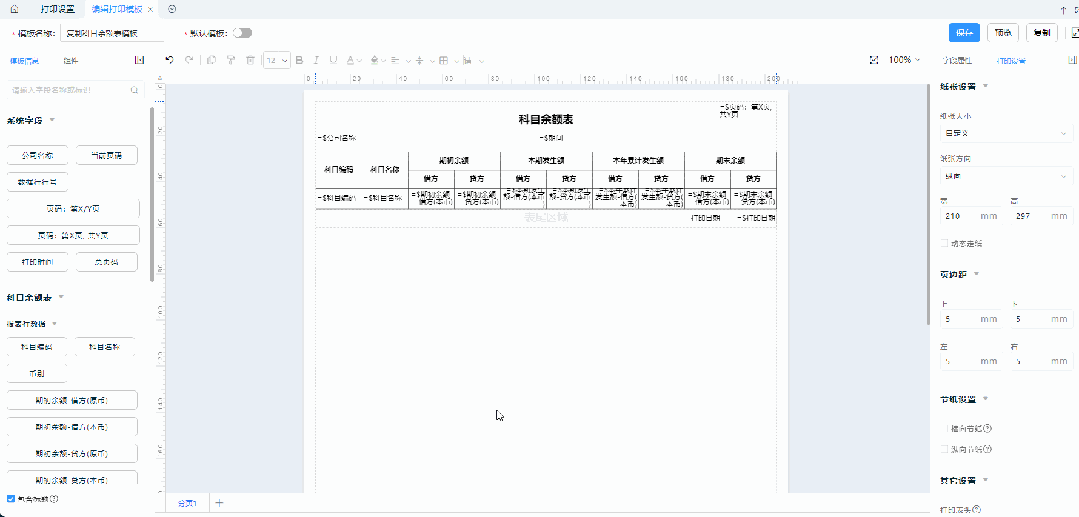 这个是精斗云系统新上线的凭证自定义打印功能,看看系统如何设置自定义打印模板吧。 首先,打开【设置】-【自定义打印】-【打印设置】,系统已经有预置的模板,可复制预置模板进行修改,也可以自行新增一个空白模板设计。 接下来,进入模板编辑界面,模板编辑主要分为五大区域: ①模板信息:展示凭证中的字段,包含系统字段、凭证详情字段、表头表尾字段。 ②组件:基本的打印组件,必选。包含文本、图片、二维码、条形码、数据表格、分录表格、布局网格、页眉、页脚。 ③模板编辑区:支持类似Excel表的快捷操作,可设置字体、字体大小、字体颜色、对齐方式、表格样式等丰富的操作,可针对单个字段或整体设置,满足个性化设计模板的需求。 ④字段属性:设置字段的打印样式。比如字段取值内容、格式、内容超长时的换行方式。 ⑤打印设置:纸张设置、页边距、打印表头表尾、固定行、不分页连续打印、节纸打印、不显示尾0等参数。 介绍完整体打印功能之后,赵主管若有所思的点点头:“这个模板编辑怎么添加我想要的的内容呢?”小张回复道:“赵主管您先别急,很快就会给您讲解到啦!”让跟着小张的讲解一起来看看想要设置一个“完美”的模板该如何操作吧! ① 自定义纸张大小。编辑界面右侧,“打印设置”中“纸张设置”选择纸张大小为“自定义”,设置纸张方向调整纸张宽高属性即可。 ②修改页边距。编辑界面右侧,“打印设置”中“页边距”根据打印效果输入合适的编剧值即可。 ③ 修改打印字体、颜色、以及边框。选中需要修改的字段,根据想要的效果修改字体大小、颜色以及边框等。 ④增加自定义内容、设置取值来源。选择左侧“组件”,点“文本” 将新增出来的文本字段拖至适合的位置,再点中右侧“数据源”内容 选择该字段需要赋予的数据来源。如果需要输入文本直接在“内容”中输入文字即可。 ⑤内容超出时自适应行高。选中单元格,在右侧内容超长时选择“行高自适应”。设置完成之后打印即可根据字段内容长度自适应行高,显示出完整字段内容信息。 ⑥调整行高列宽、增加/删除行(列)。选中整个数据表格,双击然后再分别去选中整行(整列)右击之后即可出现插入行(列)按钮。鼠标停留在行(列)表格线位置即可拉动行(列)调整行高(列宽)。 ⑦添加图片/二维码(添加二维码举例)。组件中选择二维码,将二维码拖到想要打印的位置,设置内容中取值字段(图片控件可上传本地图片),保存之后即可预览效果。 ⑧添加页码。组件中先选择“页脚”给画布添加一个“页脚”,再到模版信息中选择页码字段,调整到想要显示的额位置即可。 最后,模板调整好后,可修改模板名称及设置为默认模板,也可先对模板进行预览效果,最后点击【保存】。 回到科目余额表界面,点击【打印】-【设置】-【自定义打印】,选择自定义的打印模板即可。 以上即是自定义模板设置操作,快来设计一个独属于您的打印模板,让您的打印工作更加快捷、方便,同时也更好地满足您公司的特定需求~ 阅读原文:https://mp.weixin.qq.com/s/NSg9vo0oj-cKo1RICTZNag 点晴模切ERP更多信息:http://moqie.clicksun.cn,联系电话:4001861886 该文章在 2025/5/9 15:08:39 编辑过 |