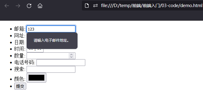 emailNew | 用于输入电子邮件地址,浏览器会自动验证输入是否符合电子邮件格式。