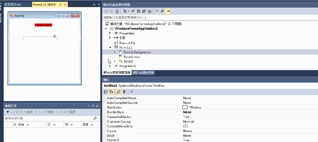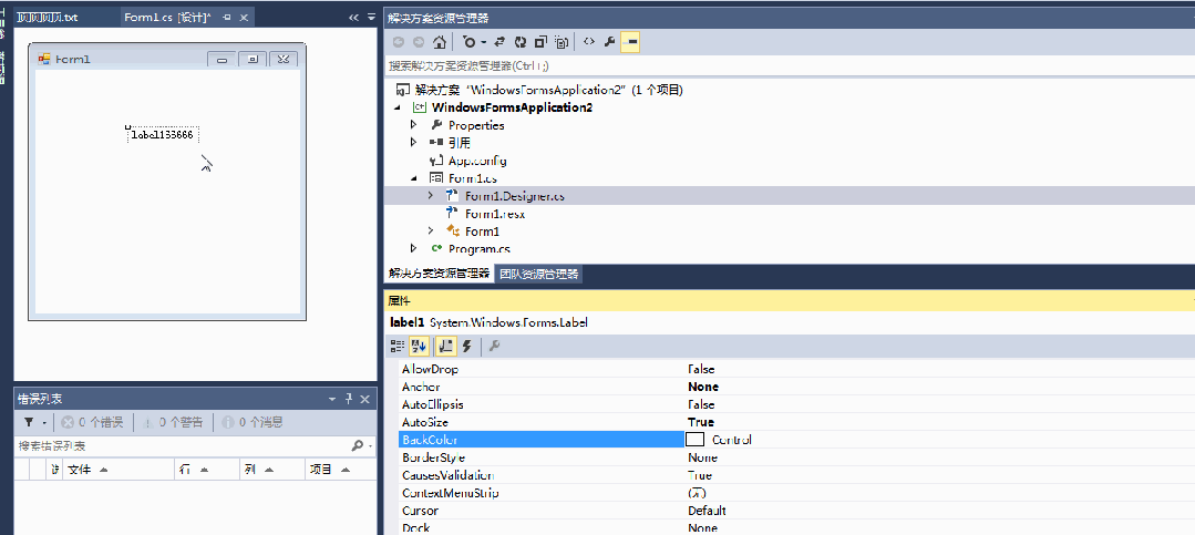 Label一般用于显示文本或者作为"按钮使用",当作为显示文本使用时,通过设置label的Text属性实现,当作为“按钮使用时”,在label的单击事件下注册事件即可,下面详细介绍label的属性以及事件: