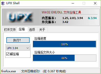 一般情况下,通过 UPX 压缩过的程序体积可以缩小50%~70%,这样可以减小该程序文件的系统资源占用。