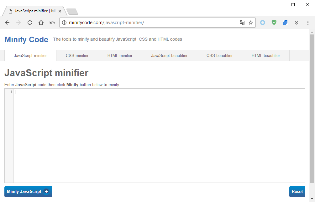 通过“Minify Code”这个网站,就是对各种各样的网页代码进行优化和压缩操作。通过网页里面的标签我们可以看到,它可以对JavaScript、CSS和HTML等代码进行操作。比如点击“JavaScript minifier”这个标签,将需要压缩的JavaScript 代码复制粘贴到输入框里面。再点击左下角的“minify JavaScript”按钮,这项云服务就会对这段代码进行分析,然后将其中不需要的冗长部分进行删除。