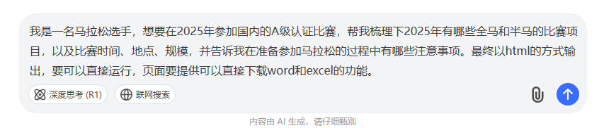 【*提示:不要打开深度思考模式,否则生成的word或excel格式不能下载】