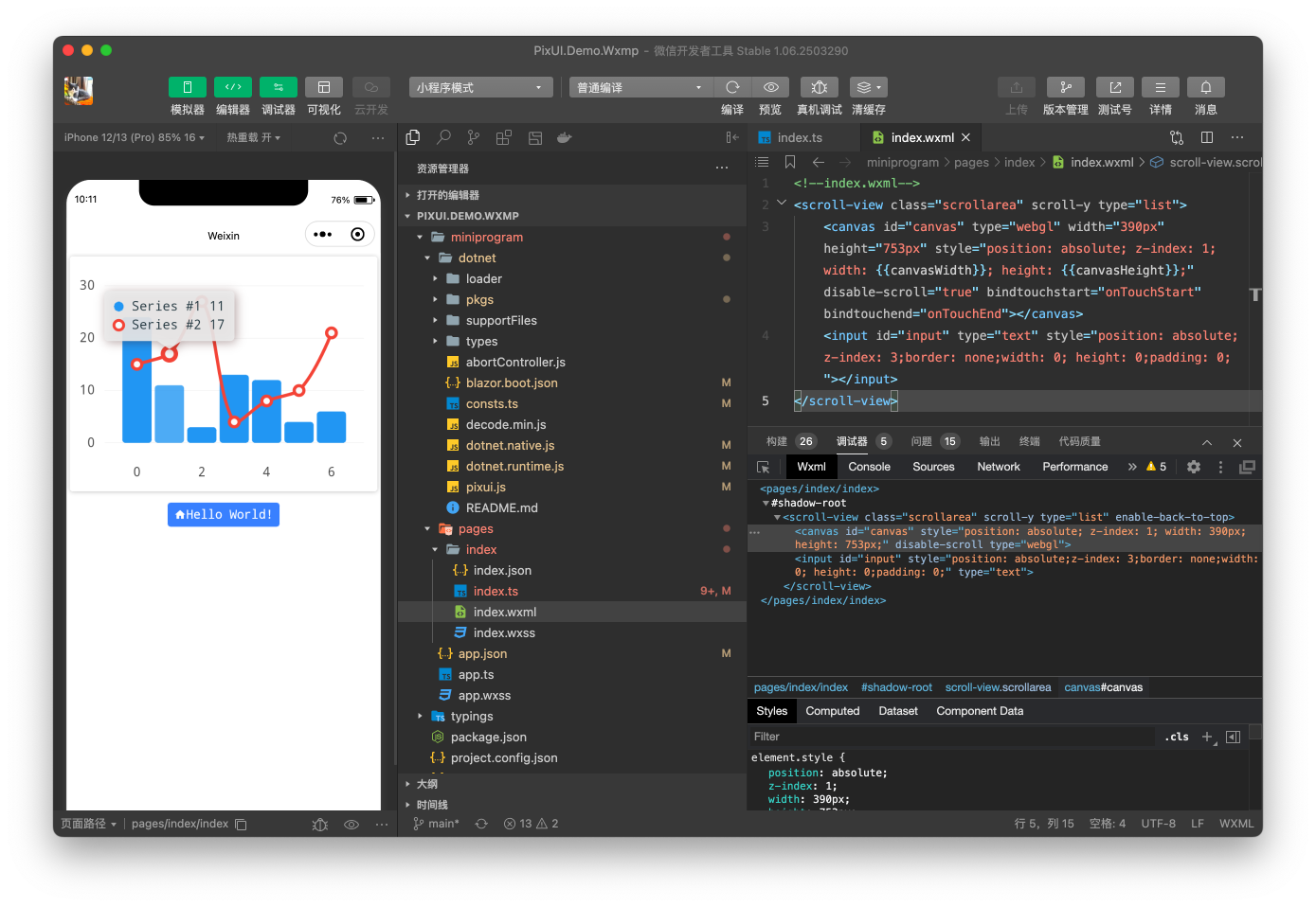 本次尝试换种方式用自己熟悉的语言来开发微信小程序,也为AppBox快速开发框架做个用户端拓展实验。感兴趣的小伙伴可以直接clone https://github.com/enjoycode/PixUI.git ,用Wechat Devtools打开PixUI.Demo.Wxmp项目体验。