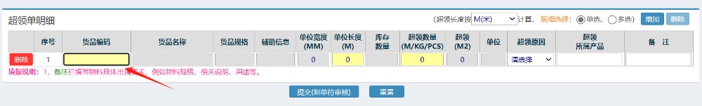 ![]() 点击进入 如下图: 首先选择所属工单,点击白色框 如下图: 点击下方黄色框,选择要领取的物料 如下图: 选完后,填写数量,和选择超领原因 如下图: 有多行料时继续点增加行,重复之前的操作 如下图: 最后提交即可 如下图: 补充说明:明细模式有单选和多选的,选了多选的话,可以多行勾选要领取的物料 如下图: 选择多选后,点击黄色框 如下图: 然后在查询界面勾选上要领取的物料,最后点击提交即可 如下图: