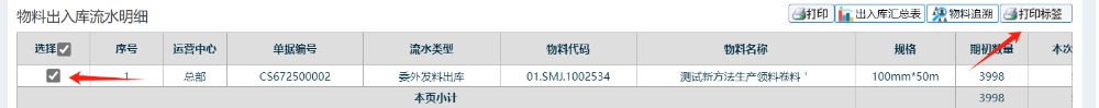勾选上后,再点击打印标签 如下图: 然后点击打印本页面 如下图: 补充说明:如果不知道对应的出库单号,可以看以下教程 点晴ERP-查询委外工单发料的出库单号-操作教程