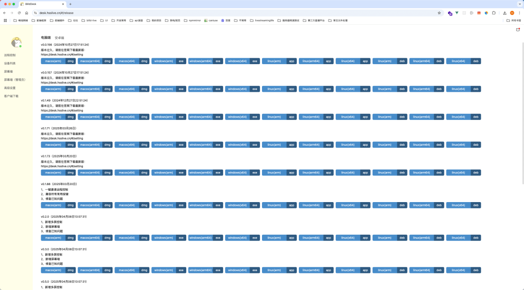BilldDesk 是一款基于 Vue3 + WebRTC + Nodejs + Electron 搭建的远程桌面控制工具,旨在提供类似 ToDesk、向日葵等远程桌面软件的功能,同时保持开源、多端兼容和全能性的特点。