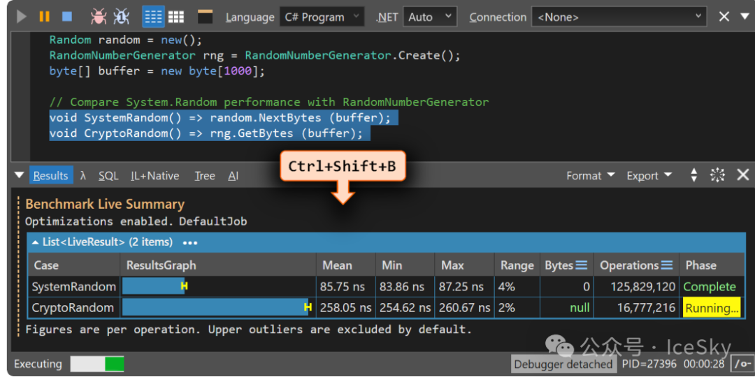 • 支持快速获取基准测试结果, 并通过可自定义的图形实时可视化器呈现。不再需要编写样板设置代码,也不再需要翻阅基于文本的日志。