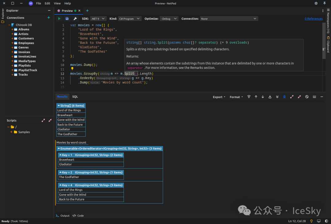 • 数据库查询开发:替代传统 SQL 客户端,用 LINQ 编写复杂查询,直接查看结果。