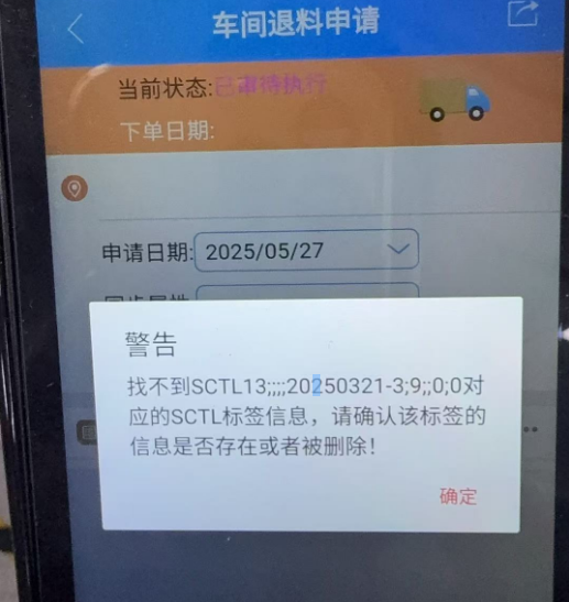点晴模切ERP-弹出提示:对应的SCTL标签信息,请确认该标签的信息是否存在或者被删除!