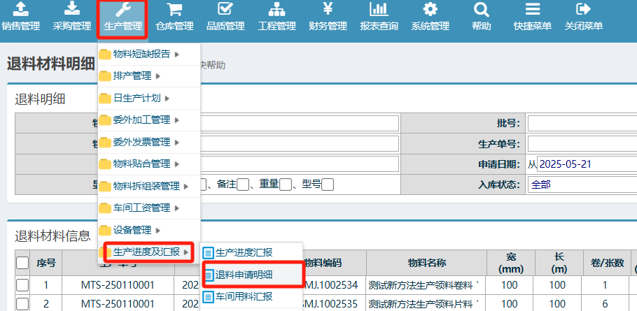 ![]() ![]() 情况描述:做生产退料申请扫码时弹出提示:对应的SCTL标签信息,请确认该标签的信息是否存在或者被删除! 如下图: 原因:生产退料的标签信息被删除了,这个页面的标签信息被删除了,扫码时找不到对应的信息 如下图: 解决办法:补打标签出来,重新扫码领料,到流水界面补打标签 教程链接:点晴ERP-补打标签-操作教程 点晴模切ERP更多信息:http://moqie.clicksun.cn,联系电话:4001861886 该文章在 2025/5/28 8:59:06 编辑过 |