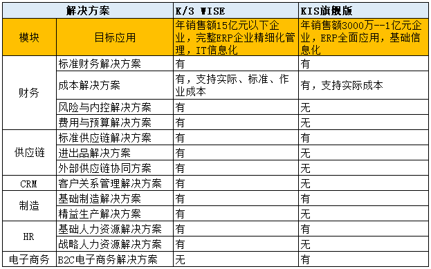 这个版本是高配版本,除了包含迷你版和标准版的功能外,还增加了应收应付、供应链和生产管理等模块,适合需要进行进销存管理和简单生产管理的小型工贸企业使用。按模块购买,需要财务就买账务处理模块和报表与分析,后续也可以加采购、销售、仓存、销售和生产管理等模块。结合小微工贸企业实际管理需求,提供一站式云服务应用,涵盖企业从采购、生产、仓存、销售、财务到移动经营等业务环节,随时随地云上办公。 高配版本,适合有供应链管理需求、生产制造管理需求的企业使用。深化企业从生产到经营、管理、服务等环节的数字化应用。提供了电子商务管理、供应链管理、生产制造管理、财务管理、人力资源管理(HR)等全面的应用功能。这些功能帮助企业高效整合内外部资源,支持企业通过物料需求计划和物料替代策略,将销售订单转化为生产订单、采购订单和委外订单,实现产、供、销协同,提高订单履约率和供货能力。 下面是更详细的差异分析: KIS旗舰版与KIS其他版本差异