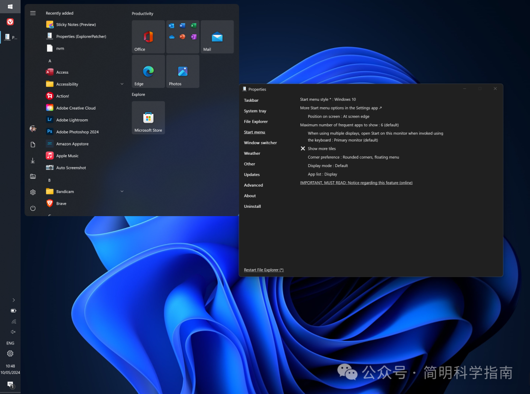 首先,它可以移除“开始”菜单中的“推荐”部分,而这在Windows 11默认设置下是无法实现的。这样一来,你能获得更多空间放置应用程序,访问起来也更加快捷。