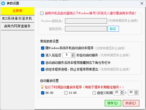 二、开启点晴MIS服务器上点晴MIS后台服务程序中的CS_Port内网穿透服务