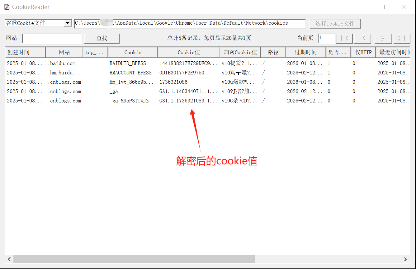 基于谷歌内核(Chromium)浏览器Cookie值的读取工具