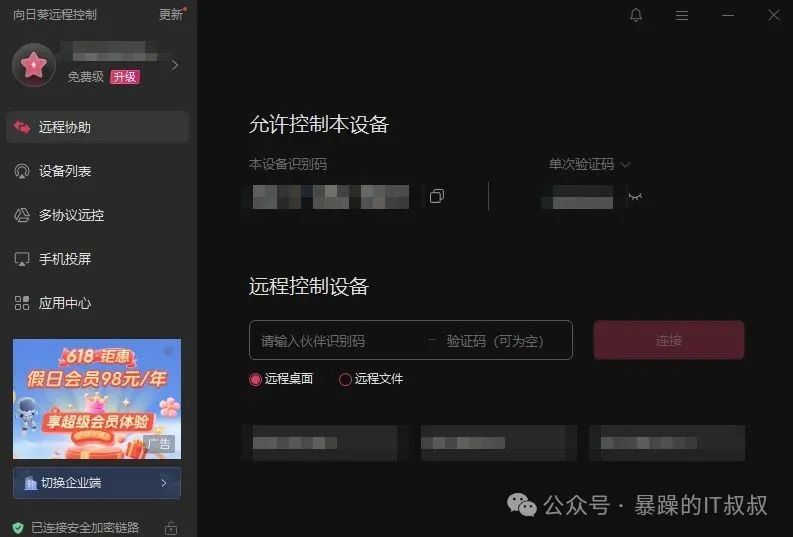 ●开源可控→RustDesk自建服务器(代码全公开) ●零痕迹监控→向日葵企业版“无痕运行”模式(托盘图标都消失)
