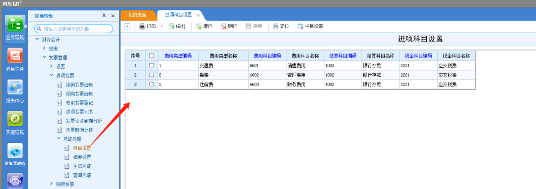 - 科目设置:按费用类型匹配费用科目、结算科目和税金科目;若未设置,需手工录入。
