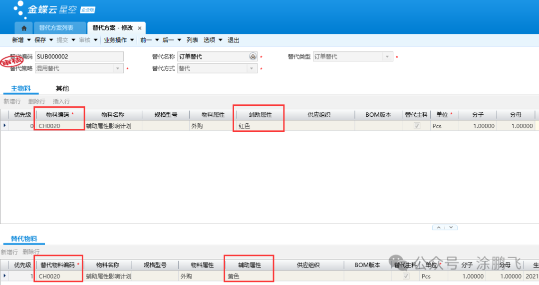 [点晴模切ERP]金蝶云星空:物料替代方案的设置、底层逻辑、案例分析
