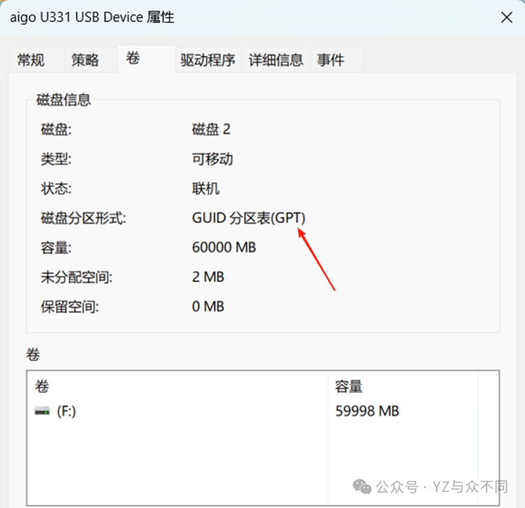 QA: 如何查看分区类型?在磁盘管理器中查看磁盘属性,如下图: