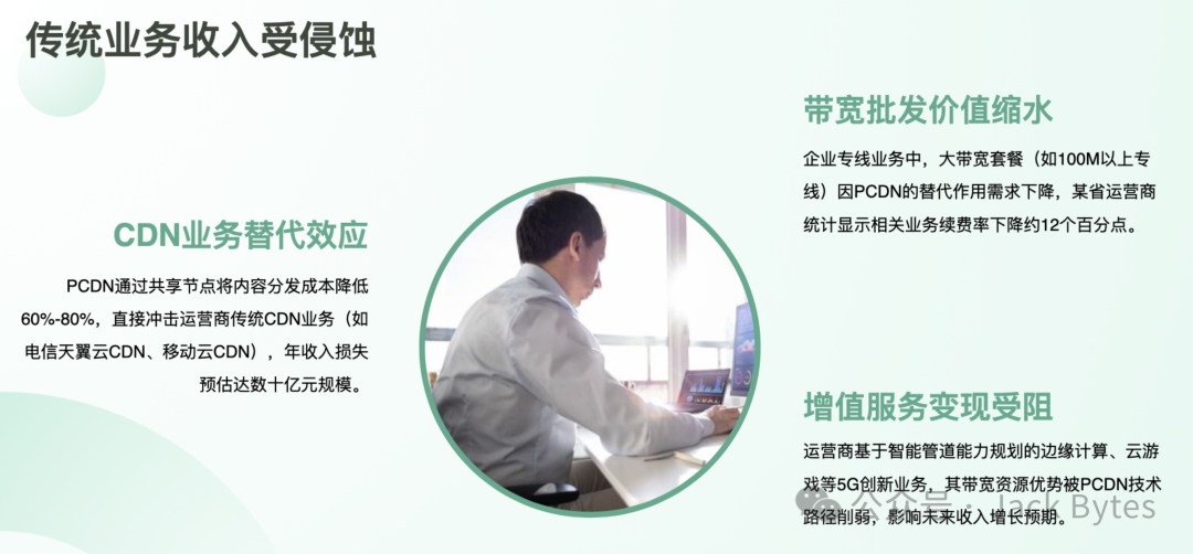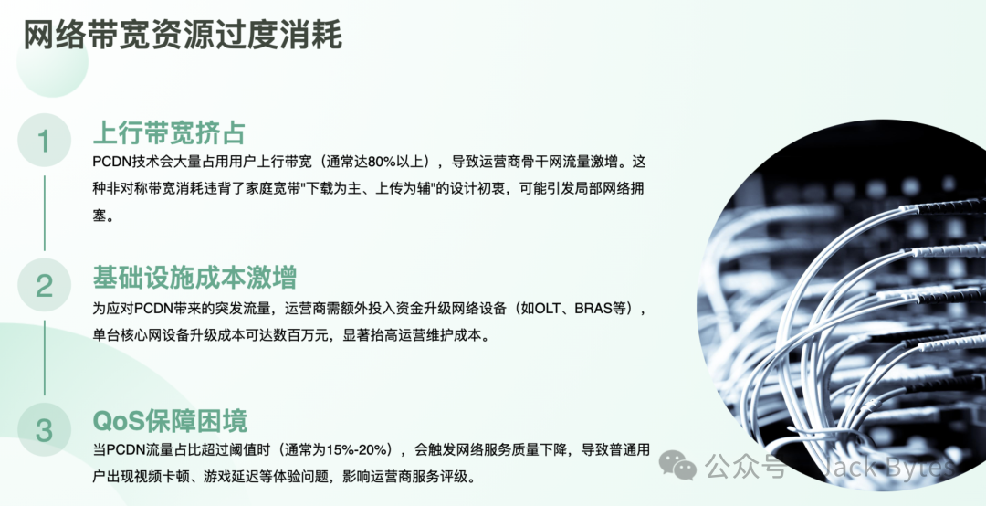 • 冲击传统专线业务‌:企业本应通过购买专线或企业级CDN服务保障内容分发质量,而PCDN利用低价家庭宽带替代,直接削减运营商的高利润业务。