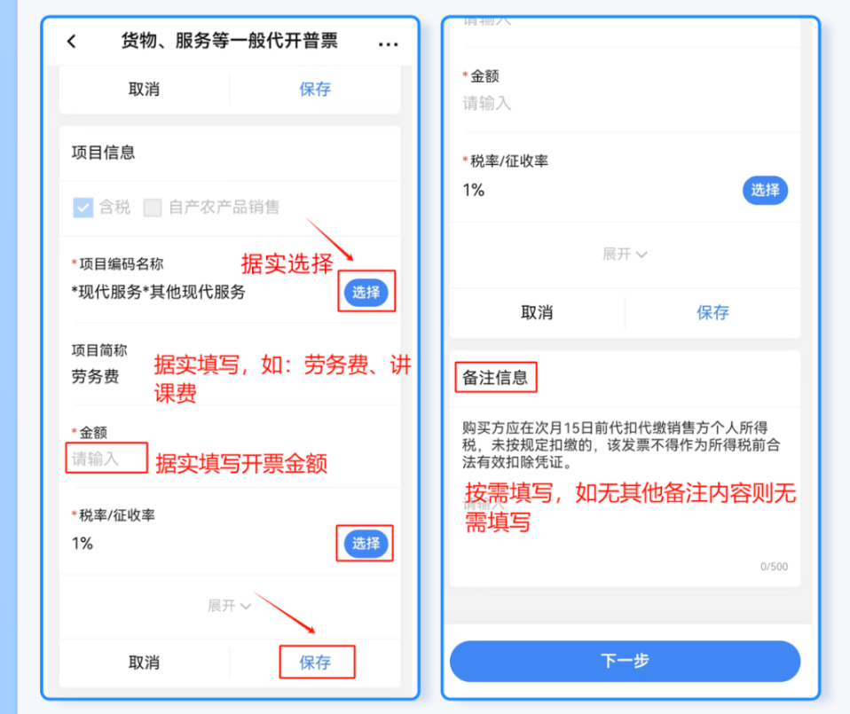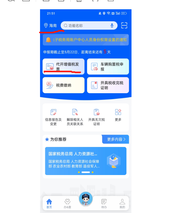 个人开具劳务费发票的步骤如下: 1、在手机上下载“电子税务局”APP。 2、登录“电子税务局”APP,首页左上角定位选择“海南”(地址在哪就定位在哪,这里是以海南为例),点击“代开增值税发票”,根据系统提示完成人脸识别及验证。 3、继续办理 4、 5、 6、