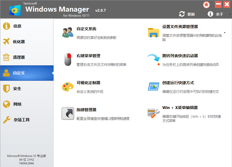 [点晴永久免费OA]系统工具 :Windows Manager For Win10/11优化大师v2.0.7,绿色便携的系统优化神器(附下载)