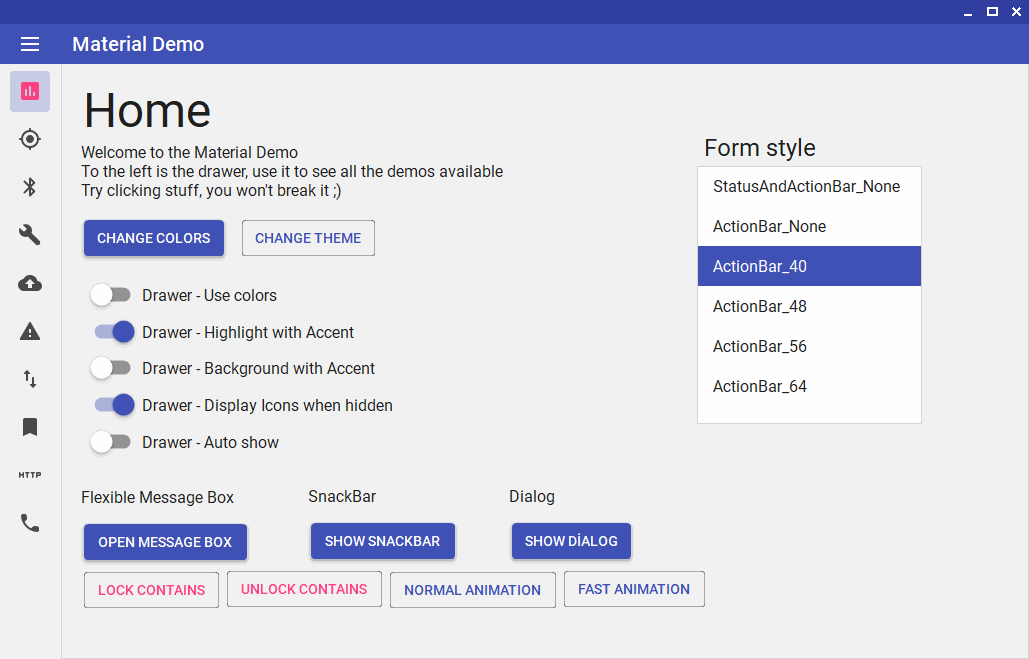 • 主题与样式:提供多种主题选项,允许开发者轻松更改应用程序的外观和风格。