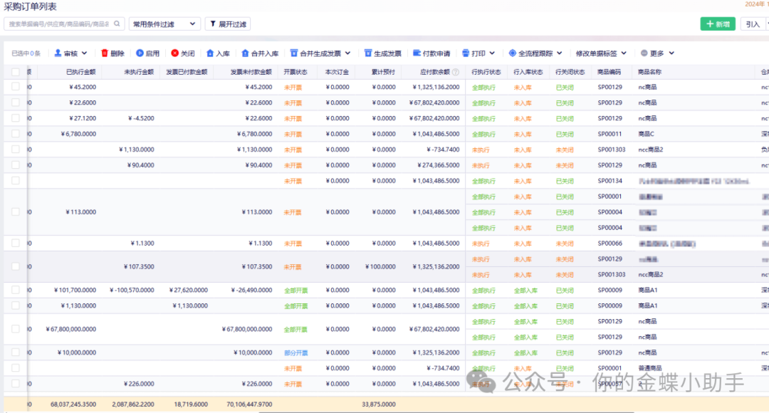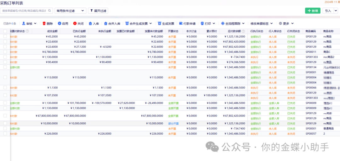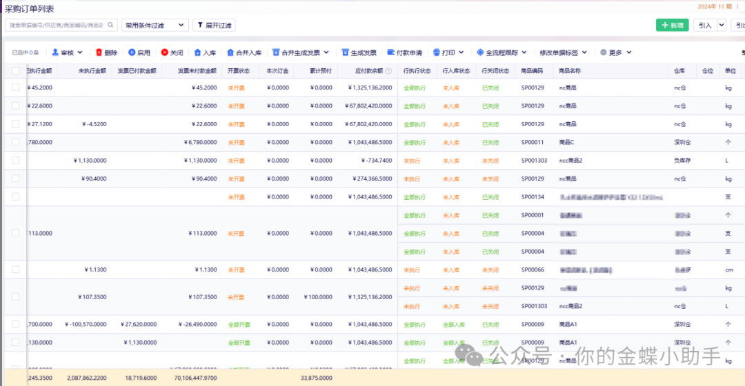 打开单据列表,可以看到行高矮,整体显示较为紧凑;