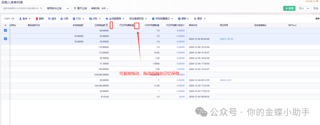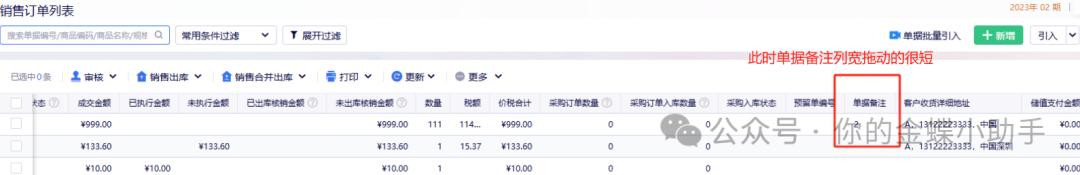 以单据备注为例,先拖一遍宽度,内容很短时会自动缩短列宽;
