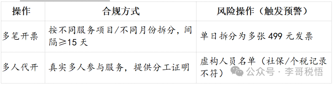 一、个人代开劳务发票需缴纳的税费 1. 增值税 税率:2023年起,劳务报酬增值税征收率从3%减按1%执行(依据财税2023年第19号公告)。 免征政策:单次(日)开票金额≤ 500元时,免征增值税。 示例:单次开票600元,增值税 = 600 × 1% = 6元;单次开票400元,增值税为0。 2. 附加税费(以实缴增值税为税基) 城市维护建设税: 税率:市区7%、县城/镇5%、其他地区1%。 优惠:2023–2027年期间减半征收(如市区实际税率为3.5%)。 教育费附加+ 地方教育附加: 费率:合计5%(教育费附加3% + 地方教育附加2%)。 优惠: 月开票额≤ 10万元时,全免; 月开票额> 10万元时,减半征收(实际费率2.5%)。 示例:某次开票10,000元(位于市区): 增值税= 10,000 × 1% = 100元 城建税= 100 × 7% × 50% = 3.5元 教育附加= 0(因月累计≤10万免征) 附加税合计:3.5元 3. 个人所得税(代开发票时不预征,由付款方代扣代缴) 计算规则: 示例:单次开票6,000元(不含增值税): 应纳税所得额= 6,000 × (1 - 20%) = 4,800元 预扣个税= 4,800 × 20% = 960元 注意:次年需并入综合所得汇算清缴(税率3%~45%),多退少补。 二、税收优惠政策 1. 小规模纳税人普惠政策 增值税减按1%、附加税减半、月销售额≤10万免教育附加等政策持续至2027年。 2. 税收园区核定征收(合规降低税负) (1)政策收紧现状 截至2025年6月,全国范围内自然人代开核定征收政策已大幅收紧,主要表现为: 全面清理违规园区:2024年起税务总局开展专项整治,15省份(如江苏、湖北等)已全面取消核定征收,仅海南、西北等少数地区保留,且门槛提高(如年累计开票额≤120万元); 业务真实性审查强化:需提供完整证据链(合同、物流/服务记录、资金流水、第三方平台交付证明),且禁止跨省代开(必须在业务发生地或户籍地办理); 行业限制:建筑、医药、股权转让等敏感行业基本禁止核定,仅限技术服务、设计咨询等低风险领域。 (2)仍可操作的合规路径 风险提示: 核定征收发票备注栏需注明“经营所得核定,个税已完税”,否则付款方仍需代扣劳务报酬个税; 单次开票超50万元将触发税务系统自动预警(金税四期指标:个人年度累计劳务收入>200万元)。 3. 个体工商户替代方案 若长期提供劳务,注册个体户可享更大优惠: 双免政策:年销售额≤120万元(月≤10万元),增值税+个税全免; 超额部分个税核定0.5%~1%。 三、涉税风险与合规措施 (一)、主要风险点 (二)、合规操作建议 1、发票代开流程: 通过电子税务局或大厅申请,选择“劳务报酬”品目; 上传身份证、劳务合同; 系统自动计算增值税及附加税; 备注栏注明“个税由支付方代扣”。 2、个税代扣提醒: 向付款企业提供《个税代扣告知书》,避免企业漏扣; 付款方需在“自然人电子税务局”按“劳务报酬”申报。 3、大额开票风控细化实操指南(以单次≥10万元为例) (1)、事前尽调与材料准备 业务真实性佐证: 签订详细服务合同(含服务内容、验收标准、付款节点); 留存服务过程证据(工作记录、沟通邮件、现场签到表); 提供资金流水匹配(收款账户需与合同主体一致,禁止第三方代收)。 开票地点合规: 必须在业务实际发生地或身份证所在地税务局代开(例:上海个人为北京公司服务,需在北京或上海开票)。 (2)、事中开票控制 分拆策略合规要点: 额度与频率控制: 单次开票≤50万元,同一企业年度累计开票≤200万元; 开票频率≤2次/月,避免“连续性劳务”被认定为事实劳动关系。 (3)、事后税务管理 付款方代扣义务: 若发票备注“个税由支付方代扣”,付款企业需在付款当月通过自然人电子税务局按“劳务报酬”申报(计算公式:(不含税收入×80%)×税率-速算扣除数); 风控自检清单: ①合同与发票品目是否一致?(如“技术服务”≠“咨询费”) ②资金流水是否与发票金额、时间匹配?(偏差>5%需说明) ③是否留存服务成果文件?(如设计方案、代码仓库记录) ④年度累计开票额是否超身份证归属地个税汇算清缴预警线?(2025年标准:>80万元) 四、总结建议 1、税负优化:小额开票(单次≤500元)免增值税;大额或长期业务优先选择税收园区核定或注册个体户享受低税率。 2、合规核心:确保开票地、业务真实、个税代扣“三证统一”(合同/发票/资金流)。 3、风险预防:保存劳务合同、沟通记录备查;定期登录“个人所得税APP”核查代扣情况。 ① 当前严查的违规情形 “三集中一交叉”开票:多人频繁为同一企业开票,且开票人社保/户籍地集中; 资金回流证据:个人收款后短期内转账至开票企业关联账户; 虚假物流信息:无实际服务却伪造物流单(需与支付宝/微信支付数据匹配)。 ②稽查应对建议 蓝色预警(系统提示):3日内提交《业务真实性说明》+证据链复印件至税务局; 黄色预警(暂停开票):配合税务约谈,提供原始合同、银行流水、服务过程影像。 阅读原文:原文链接 点晴模切ERP更多信息:http://moqie.clicksun.cn,联系电话:4001861886 该文章在 2025/7/2 0:28:12 编辑过 |