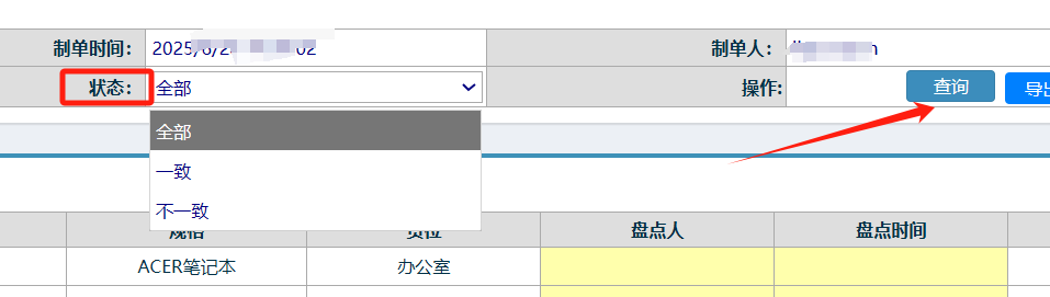 可以选择状态是否一致,点击查询