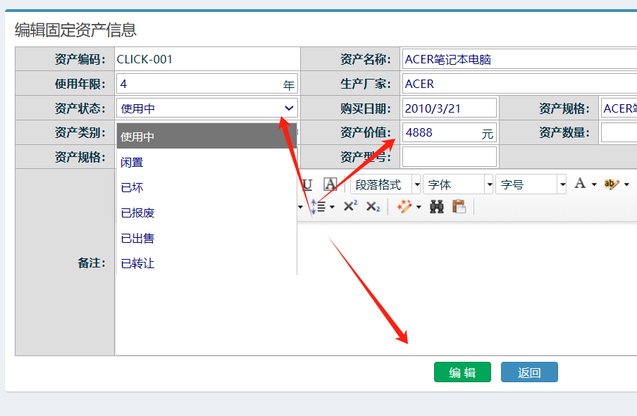 点击编辑按钮