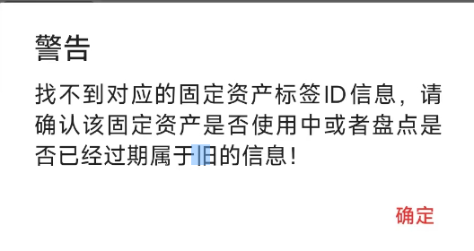 :点晴OA-弹出提示:找不到对应的固定资产标签ID信息,请确认该固定资产是否使用中或者盘点是否已经过期属于旧的信息