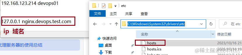因在本地测试,所以需要使用域名访问到 nginx,需要配置 hosts(服务器外网域名配置就将域名解析到服务器)